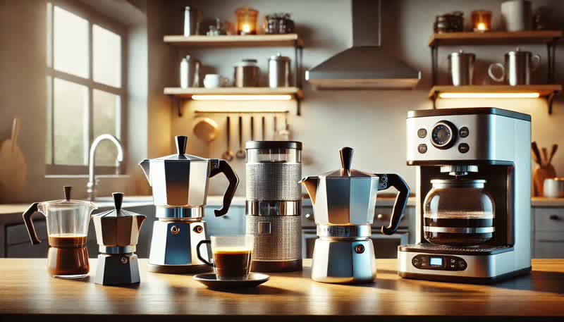 تهیه قهوه با موکاپات، فرنچپرس، اسپرسوساز