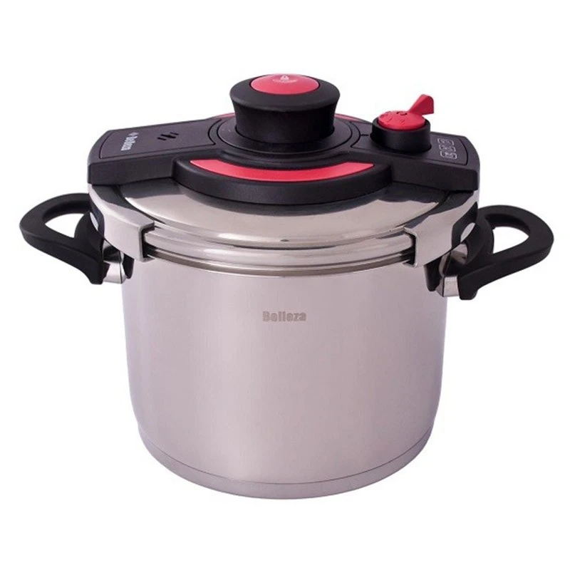 زودپز گازی بلزا مدل 71201/6 یک زودپز با کیفیت و بادوام است که با بدنه استیل ضدزنگ و ظرفیت ۶ لیتری طراحی شده و برای خانوادههای پرجمعیت بسیار مناسب است. این مدل دارای درب کلیپسی با قفل ایمنی، سوپاپ اطمینان و دستگیرههای باکالیتی مقاوم در برابر حرارت است و روی انواع اجاقها قابل استفاده میباشد.