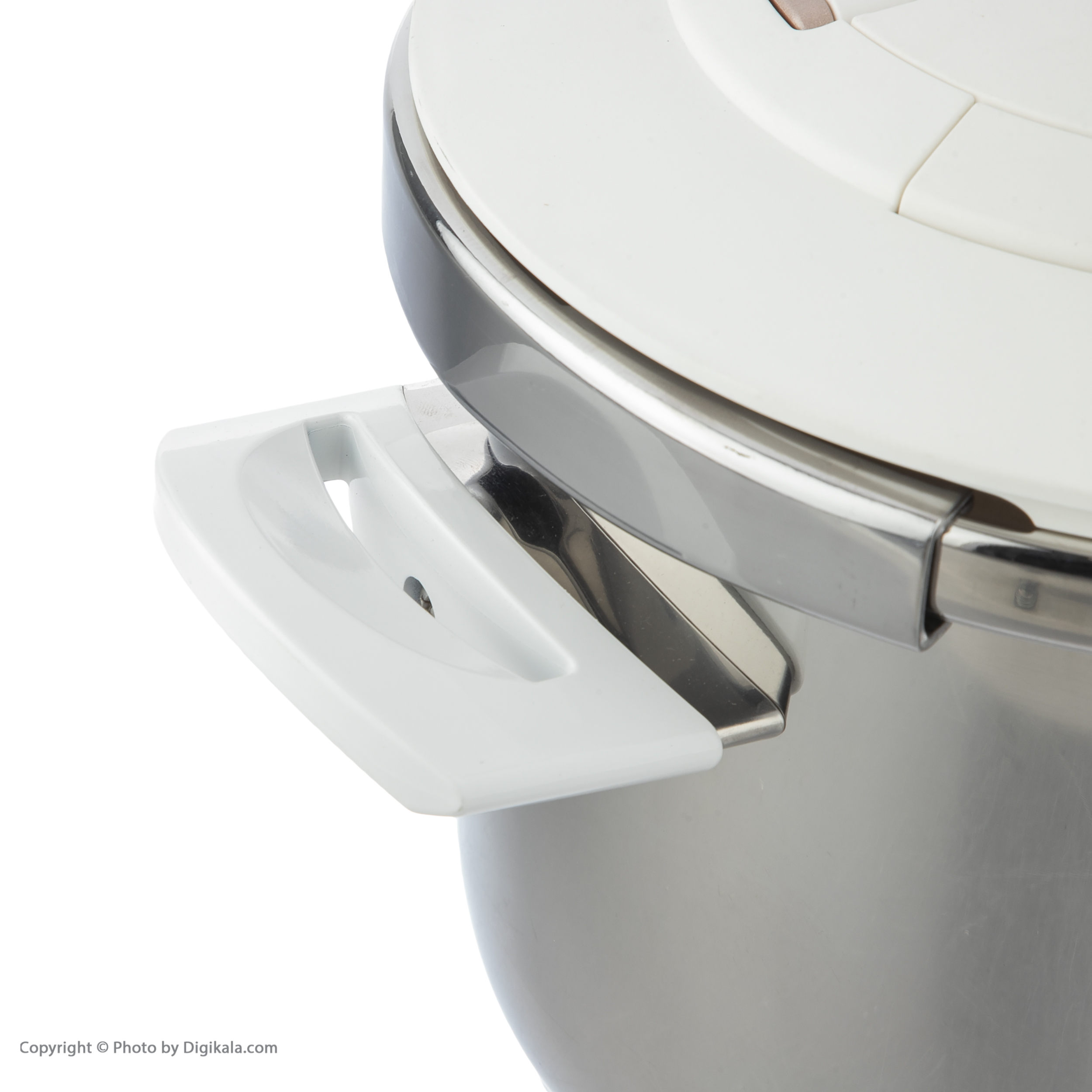 سوپاپی روی درپوش تعبیه شده است تا فشار اضافهی داخل زودپز را تخلیه کند. این محصول پخت سبزیجات، سوپ، موادغذایی کنسروشده و غذاهای گوشتی را در زمان کوتاهی برای شما امکانپذیر میکند. بدنهی این زودپز تماماستیل ضدزنگ است که آشپزی با آن را لذتبخش میکند و علاوهبر مقاومت بالا، موجب تمیزشدن آسان آن نیز میشود. این مدل زودپز دسینی دارای طراحی آسانبازشوست که بهراحتی با یک دست و بدون صرف ذرهای انرژی و بدون نیاز به کمک و تنها با بالابردن دسته میتوان آن را باز و بسته کرد. زودپز دسینی با گنجایش 6.5 لیتر برای پخت سریع غذاها مناسب است. این محصول را میتوانید با خیال راحت بدون درپوش، داخل ماشین ظرفشویی بشویید. دسینی یکی از تولیدکنندههای موفق در زمینهی محصولات پختوپز است که استفاده از مواد اولیهی مرغوب و باکیفیت باعث شده به یکی از بهترینها در این صنف تبدیل شود.