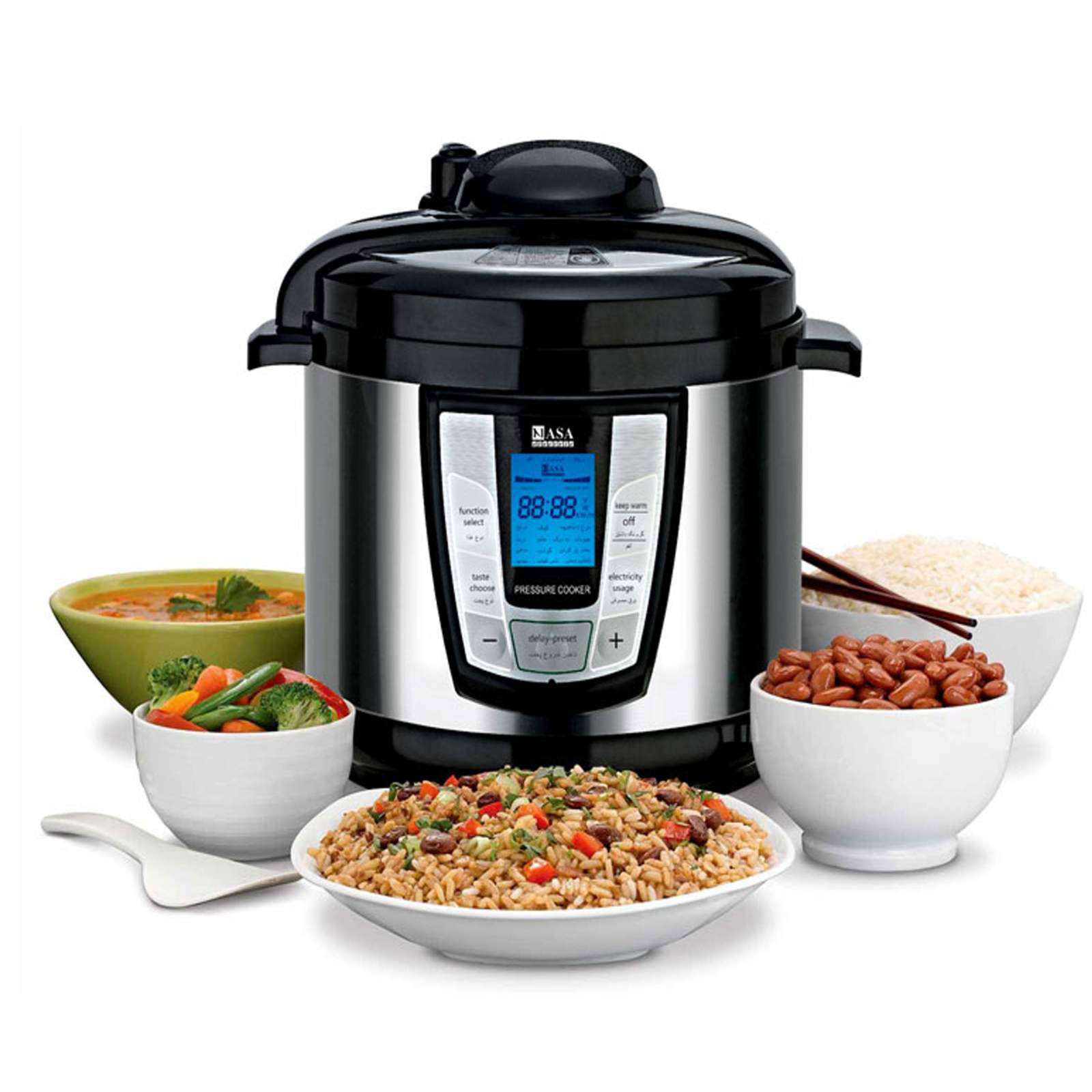 زودپز دیجیتالی ناسا الکتریک مدل NS-3071 نه تنها یک زودپز خوب و عالی برای خانواده است بلکه یک دستگاه چندکاره پرفکت و یک رستوران منوباز در آشپزخانه شماست.این دستگاه با توانی معادل ۱۰۰۰ وات می تواند تا هفتاد درصد وقت و انرژی شما را ذخیره سازی نماید و در زمانی کوتاه بهترین دستیار شما در خانه باشد.جنس بدنه بیرونی زودپز دیجیتالی ناسا الکتریک مدل NS-3071 از جنس استیل ضد زنگ بوده و دارای یک دیگ داخلی آلومینیومی می باشد که با روکش تفلون نچسب پوشانده شده است و می تواند ظاهر زیبای غذای شما را تضمین کند ، همچنین ظرفیت ۵ لیتری این زودپز خوب جوابگوی نیاز یک خانواده ۶ تا هشت نفره می باشد.درب زودپز دارای یک لاستیک با کیفیت و مرغوب بوده که از خروج بخار داخل دیگ جلوگیری کرده و به این ترتیب با افزایش دما و فشار درون زودپز سرعت طبخ غذا را بالاتر می برد.درب زودپر همچنین دارای سوپاپ اطمینان بوده که برای خروج بخار در زمان لازم کاربرد دارد و نتیجه آن پخت یک غذای لذیذ در بهترین حالت و با ایمنی می باشد.قابلمه دارای دستگیره هایی از جنس پلاستیک مرغوب بوده که با طراحی عالی و خوش دست کمک موثری برای جابه جایی زودپز هستند.